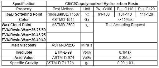 C5/C9 Copolymerized Hydrocarbon Resins has the following characteristics: